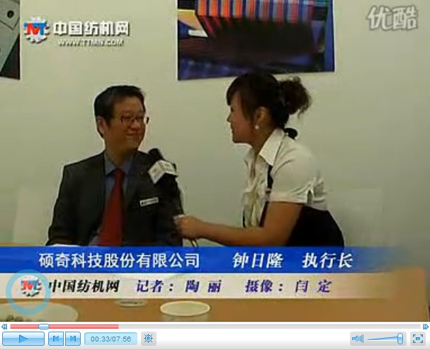 今年6月22日,2010年中國國際紡織機械展覽會暨ITMA亞洲展覽會在上海盛大開幕。在展會現場,碩奇科技股份有限公司執行長鐘日隆先生接受了記者的采訪。