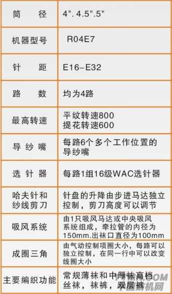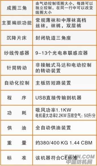 其中4寸口徑提花絲襪機為常規絲襪機,4路進線提花編織,其主要功能以生產常規薄襪和中厚襪為主。4寸口徑提花絲襪機的主要特點為生產流通產品,成本低,市場大。
