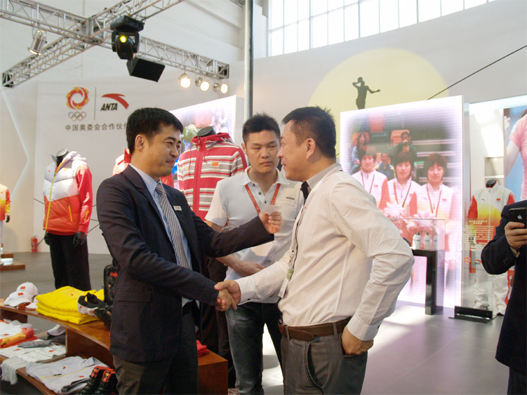 5月17日,由國家體育總局、中華全國體育總會、中國奧林匹克委員會、中國體育用品業(yè)聯(lián)合會、中國體育科學(xué)學(xué)會主辦的主題為“創(chuàng)新 共贏 責(zé)任”的2012年(第30)屆中國國際體育用品博覽會,在北京中國國際展覽中心(新館)盛大開幕。國家體育總局副局長段世杰,國家體育總局局長助理曉敏在我公司負(fù)責(zé)設(shè)計施工的安踏展位前駐足良久并一致給予高度評價。