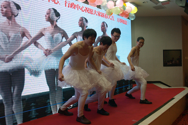 運(yùn)營(yíng)中心員工白鴻雷、馮自帥、韓子博及行政中心王健合演天鵝舞
