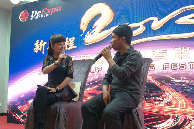 設(shè)計(jì)中心總監(jiān)丁立兵同創(chuàng)意副總監(jiān)高睿及設(shè)計(jì)師馬婧合演小品《相親二》