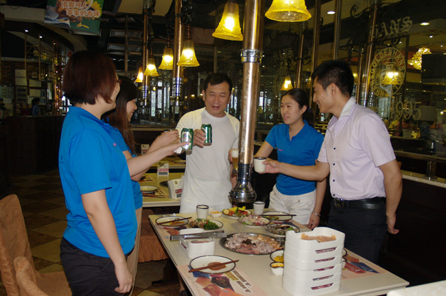 賽后,大家集體合影留念,休息、淋浴后,一起到金漢斯烤肉歡樂聚餐,午宴上,大家歡聲笑語、推杯換盞、大快朵頤,拉近了新員工與老員工的距離,增進(jìn)了領(lǐng)導(dǎo)與員工間的感情。