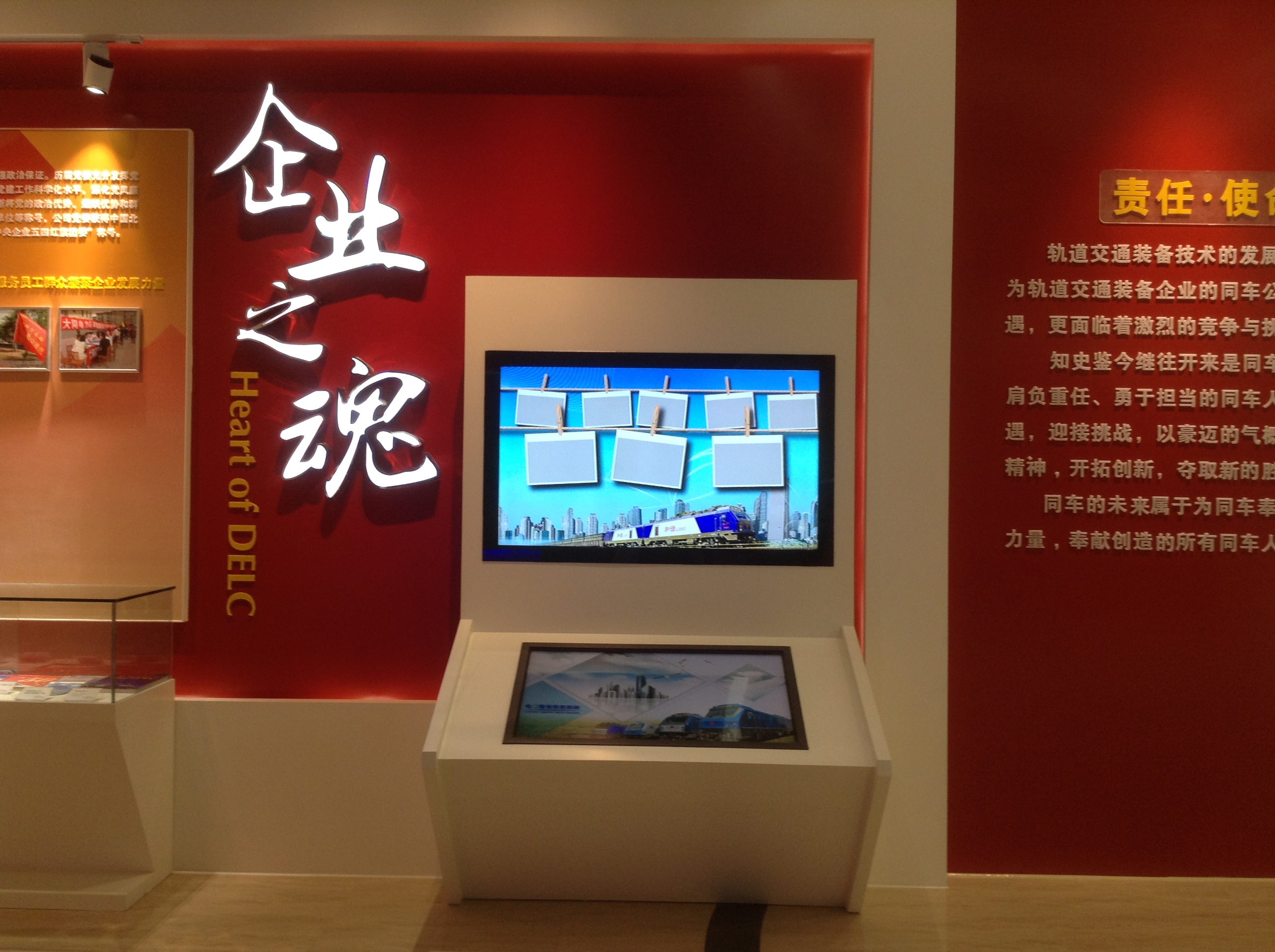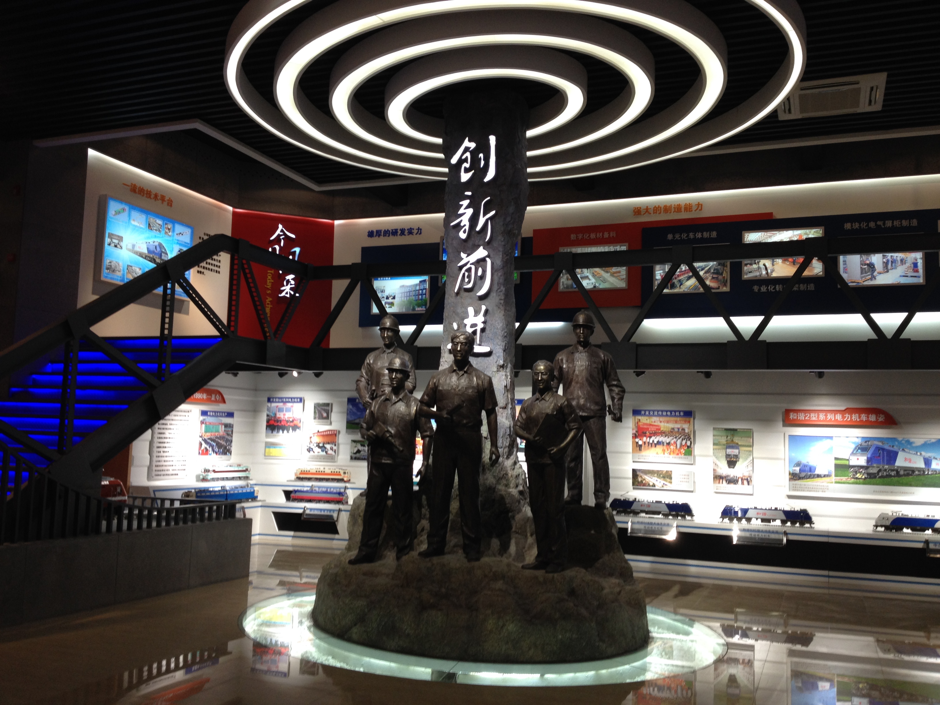 大同電力機車有限責任公司【廠史館】布展區(qū)域面積近1200平方米,以“塞上古城新動力﹒驅(qū)動中國夢前行”為主題。【廠史館】整體規(guī)劃設計部分包括:廠史館外立面裝飾設計、廠史館前小廣場及雕塑設計、廠史館及相關功能型會議廳規(guī)劃設計。在表現(xiàn)手段方面主要有圖片靜態(tài)展示,文字說明展示、視頻演示、浮雕墻、實物展示、雕塑、模型及動態(tài)沙盤、多媒體互動展示。主要分為序廳(展現(xiàn)活力與希望)、溫暖記憶(回望堅定與支持)、前進歷程(銘記那一份啟示與開拓)、今日風采(體現(xiàn)不止步的創(chuàng)造與奮進)、燦爛明天(展望企業(yè)未來的引領與卓越)、企業(yè)之魂(明晰企業(yè)的社會責任與精神主旨)六大部分重點展示。