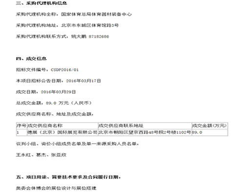 ? ? ? ?3月29日,國家體育總局體育器材裝備中心“中國奧委會體博會展位設計搭建服務”項目(編號CSDP2016/01)組織采購、評標工作結束,德展集團憑借專業的精神、創意的策劃、融情的設計、品質的保證,再次贏得了評委的信任與認可,榮耀地成為連續三年為中國奧委會傾情服務的供應商!