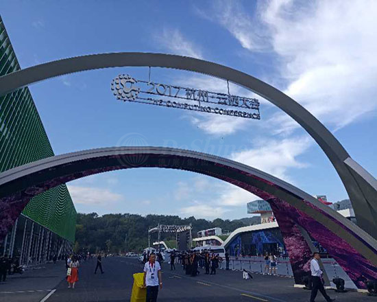 舉辦地杭州國際會展中心場館,為迎接云棲大會逐漸擴大的規模,今年新建了云棲國際會展中心二期,獨特的設計讓國際會議中心成為了云棲小鎮上一個搶眼的新地標,除了地面展館,國際會展中心二期的屋頂是一個巨大的"屋頂公園",上面既有草坪也有不同的景觀,包括1.2萬平方米的綠化、2個5人制足球場和700米跑道。