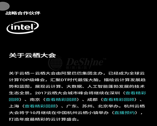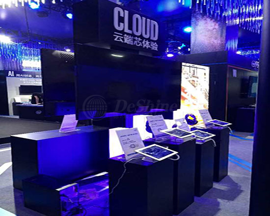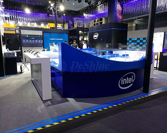 INTER公司是科技產品全球合作伙伴,是云棲大會戰略合作伙伴,今年他們對參展特別重視,在展會顯著位置預定180平方米的展位,精心打造了超酷超炫、科技感十足的展示效果。德展集團在服務INTER過程中,充分發揮專業水準,突出了創意思路先行、設計緊跟需求、全程服務貼心、精益品質打造、高效規范施工的經營理念,高品質、高效率、反應迅速的服務贏得了業內和客戶的高度贊揚!INTER公司本次展會推出了包括人工智能和AI技術為主的20余款高科技產品,一項項行業領先的高科技成果給人帶來震撼和賞心悅目的同時,將吸引更多業屆伙伴前來洽商合作!