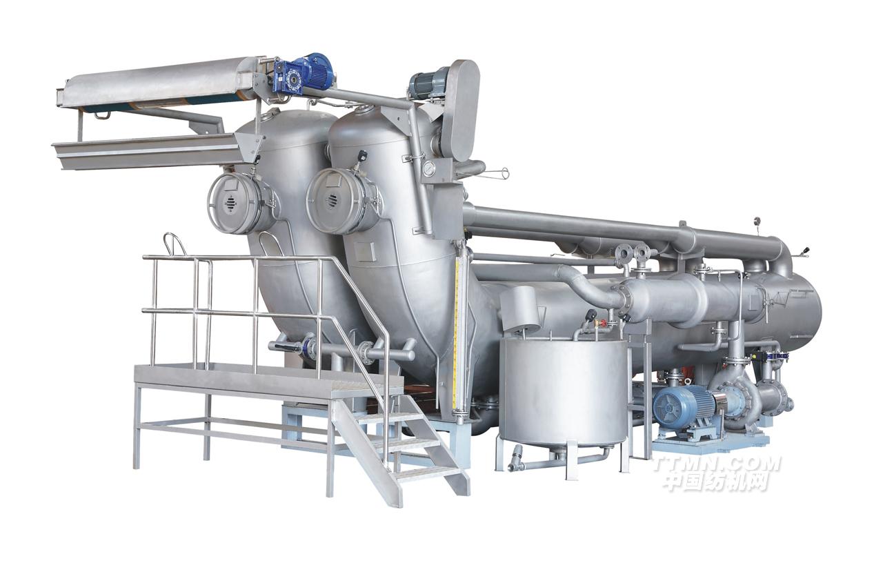 本機以溢流原理設計,織物長時間與高溫循環(huán)染液混合流送至儲布槽,機體外形以長”L”型設計,有效降低織物到提布滾筒高度,縮短織物懸空長度,減少織物拉拔受力,織物在染整過程中長時間在染液中流動傳送.以達到本設備有效提升織物著色與均染的效果,較大程度縮短染色時間,減少織物與設備部件及缸體的摩擦,確保織物處于十分柔和的自然狀態(tài)及表面質(zhì)量.