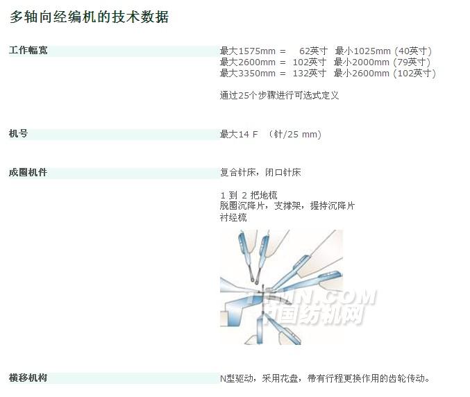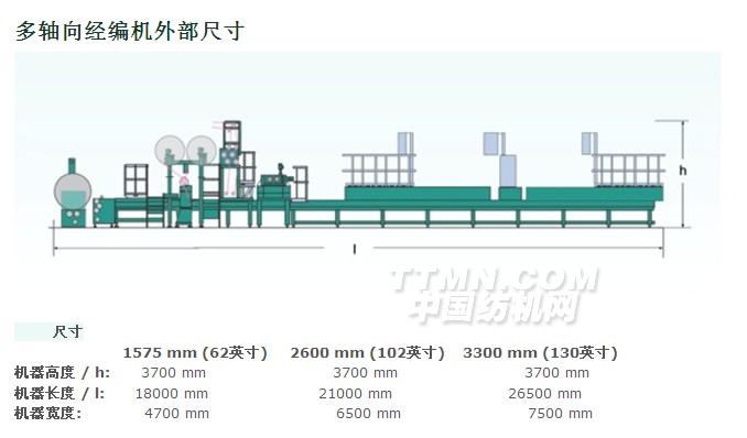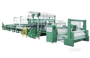多軸向多層織物由一層或多層平行伸直排列、具有不同取向角度的紗線層組成,其表面結(jié)構(gòu)通過(guò)線圈固定。纖維網(wǎng)、未加固的玻璃纖維短切紗、膜帶、泡沫或其他的材料均可以用來(lái)與紗線結(jié)合。理想的襯緯和層固定條件可以獲得很高的生產(chǎn)速度和優(yōu)良而均一的織物。