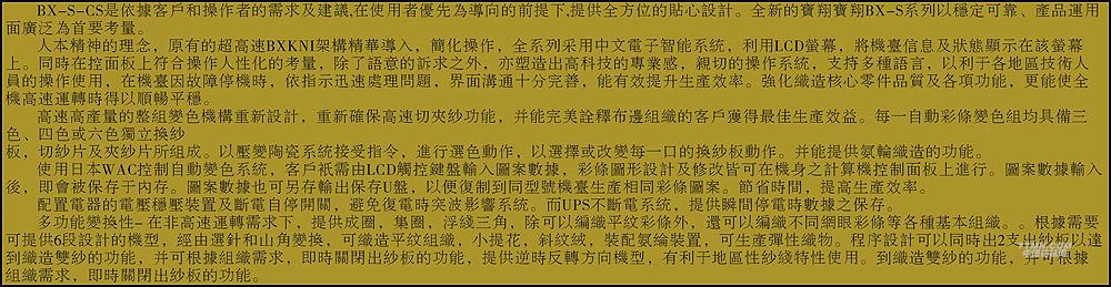 您所在的位置:紡機(jī)網(wǎng) > 產(chǎn)品庫 > BX-S-CS單面自動(dòng)變色針織圓緯機(jī)