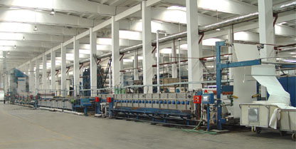 MT/SS100進(jìn)布架→MTK107A堿槽裝置→MA/H572中固二輥軋車→M24A(I)直輥絲光機(jī)→MA/H572中固二輥軋車→MTK150繃布裝置→MA/H572中固二輥軋車→MA/H121E布鋏絲光機(jī)→MA/H573中固三輥軋車→HM511D直輥槽→MA/H572中固二輥軋車→M1541水洗機(jī)→MA/H572中固二輥軋車→M1541水洗機(jī)→(MA/H572中固二輥軋車→M1521水洗機(jī))×4→MA/H572中固二輥軋車→M1517M水洗機(jī)→MA/H572中固二輥軋車→M1517水洗機(jī)→MA/H573中固三輥軋車→M1615B烘筒烘燥機(jī)→平幅落布