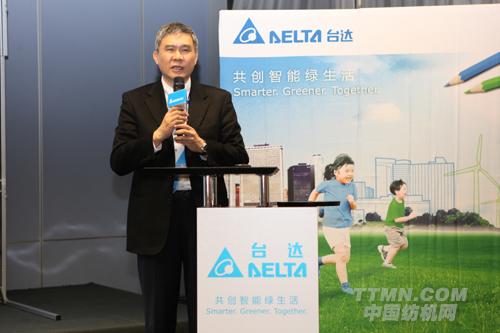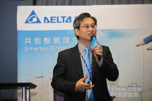 臺達機電事業部張訓??偨浝斫榻B臺達所展出之高階工業自動化系統整合解決方案。