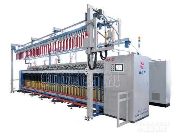 HQF全自動落紗粗紗機采用集機、電、氣、光等先進技術為一體,對紡紗恒張力、紡紗成型、滿管自動落紗、空滿交換、自動生頭紡紗等實現全過程自動化控制,紡紗的同時粗細聯交換機向細紗工序自動輸送粗紗滿紗紗管。HQF2011全自動落紗粗紗機可以降低紡紗工人勞動強度,減少用工數量,同時進一步提高了紡紗質量、紡紗效率、紡紗速度、降低了運轉噪音、提高易損件使用壽命。