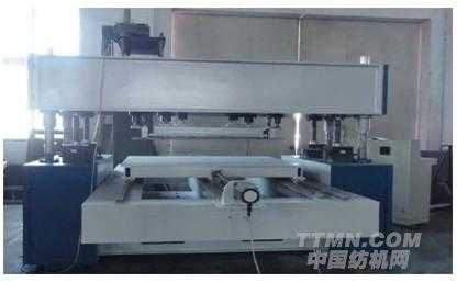 這款新機型的主要特點:剝網板在針刺過程中可以通過專用特殊絲桿與針刺同步,逐步調節隔距,以適應不同克重、不同厚度的產品;在針刺底板結構中采用大板式結構,滿足不同產品的要求;針板專用雙結構式互換性能;托網板水平運動安裝在機架上,采用步進控制系統;針刺運動機構安裝在升降機構上,采用變頻控制系統;升降機構安裝在機架上,采用步進控制系統;整個系統通過 PLC 控制,實現聯動及單動模式。該針刺機機幅 1000~2500mm,通過逐層鋪覆逐層針刺纖維板,可生產高度達到 800mm的板型產品。