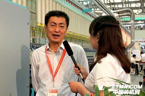 展會現場,經緯紡機董事長葉茂新接受了記者采訪。采訪中,葉茂新發表了對國內外紡機行業現狀的看法,同時,表示作為中國紡機行業的龍頭企業,經緯紡機背負了帶領中國從紡織大國到紡機強國的重大使命。