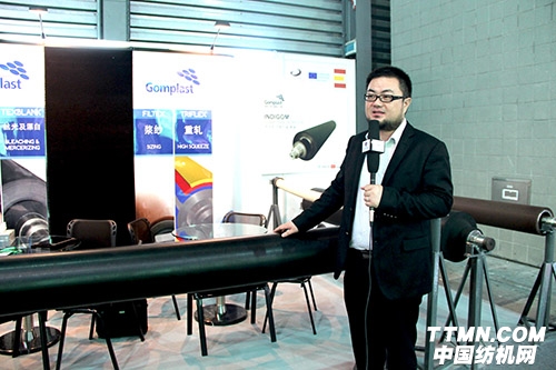 在展會現場,中國紡機網記者對常州高普拉斯特膠輥有限公司總經理丁昕進行了采訪,丁總對展臺特色產品做了詳細的介紹。