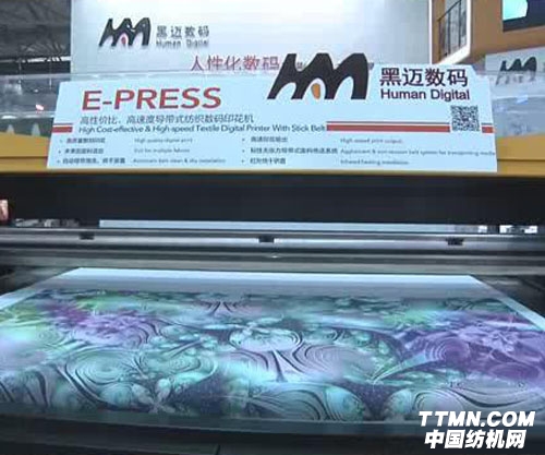 E-PRESS高速度導帶式紡織數碼印花機是本次黑邁數碼重點展出的產品之一。陳先生告訴記者。該產品最高輸出1440dpi高清晰畫面,滿足客戶對印花的高精度要求。速度達130平方米/小時,最高輸出速度達270平方米/小時,大大提高了生產效率。而作為展會亮點之一的TS—JET產品,作為一款專業的T恤打印機,最大特色就是可實現三款T恤同時打印,運行速度快、性能穩定,非常受客戶歡迎。