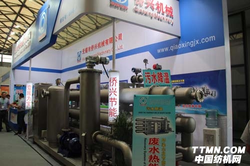 本次展會上,僑興機械為我們重點推薦了公司自主研發的QXD廢水熱能回收系統。該系統選用優質的耐腐蝕不銹鋼材料,并經過特殊工藝加工制作,無堵塞、無結垢,內部結構合理,換熱效率在90%以上,換熱系數在5500W/m2.K以上,使用壽命優于同類產品。電氣采用可編程控制器(PLC)控制,各類參數可根據用戶的實際需要進行設置。全中文人機界面,操作方便。同時該系統具有自我保護和報警功能,保證了系統各元件的運作穩定性,從而做到最大的延長系統維護保養周期。此外該液位控制器能根據水池中水的液位高低,自動調節泵的開量,當液位達到一定液面時,本系統可自動停機。