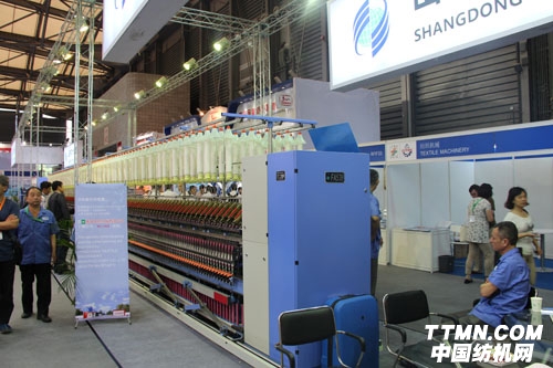 FA502環錠細紗機是本次展會上,山東同大集團主推的產品之一,該產品卷繞裝置采用自動升級結構,無需調換棘輪,就可保證管紗良好的成形。主軸采用三角帶,平皮帶和同步帶三種形式可供通用戶選擇。為保證產品運轉可靠、平穩,該產品還采用了同大自主研發的核心技術,紡紗性能更優。