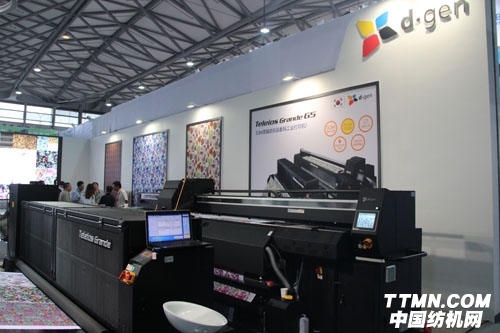 在展會期間,韓國D-gen推出的Teleios Grande G5打印機,其印幅寬度最大可達到3.3m,同時印染速度也大大加快。據了解,Teleios Grande采用理光GEN4L噴頭,能夠滿足不同面料的印染需求。