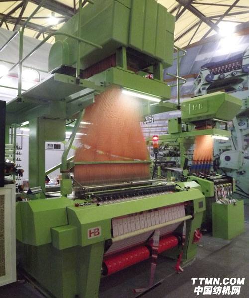 據悉,JAB系列劍桿商標機最顯著的功能是達到了600mm幅寬,不僅僅應用于生產商標織物,還可以用來生產各類圖案織物,堪稱織物產品的打印機。同時該產品在全球市場上有著非凡的競爭力。智能、高效的控制系統,使該機器能實現多品種織物的生產轉換。可實時顯示的操作界面和高效率的品種轉換,除為特殊要求用戶裝造不同龍頭外,還為用戶獲得生產多品種和高效率的雙向優勢。工作人員向我們自豪的介紹新一代機器總效率提升20%,在500rmp下可長時間穩定運行。該產品的誕生標志著中國窄幅織機制造已邁入國際先進行列。